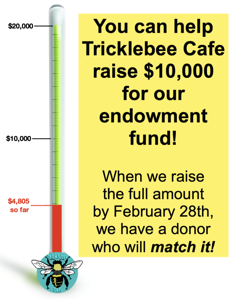 Checks are a great way to give, and may be made out to “Tricklebee Cafe” and sent directly to us: